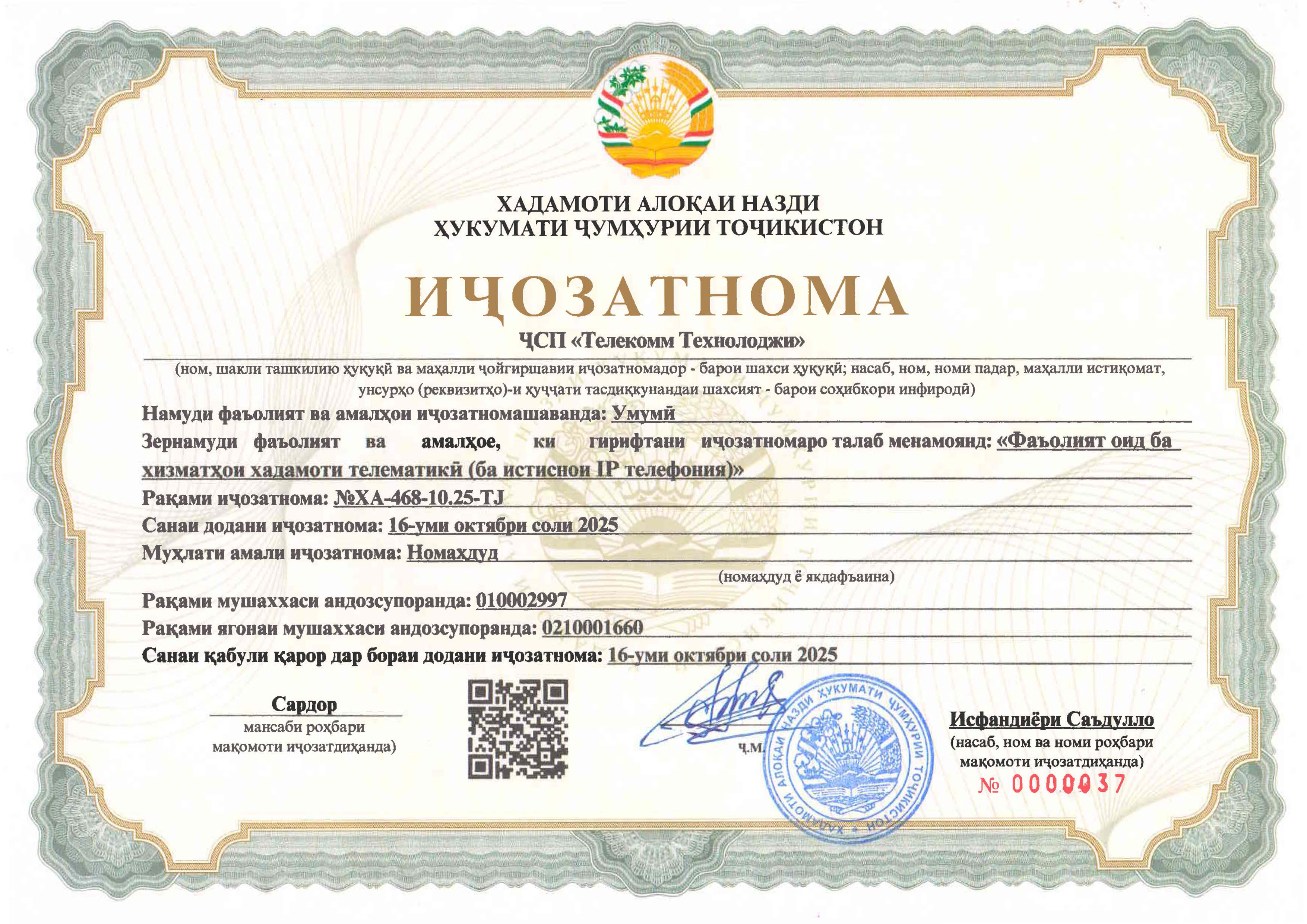 Лицензия на предоставление услуг международной телефонной связи